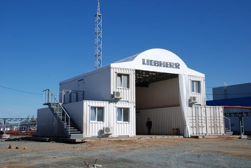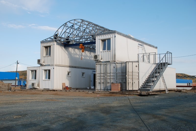 Модульное здание сервисно-полевой станции (СПС) выполнено на базе 40-футовых морских контейнеров.