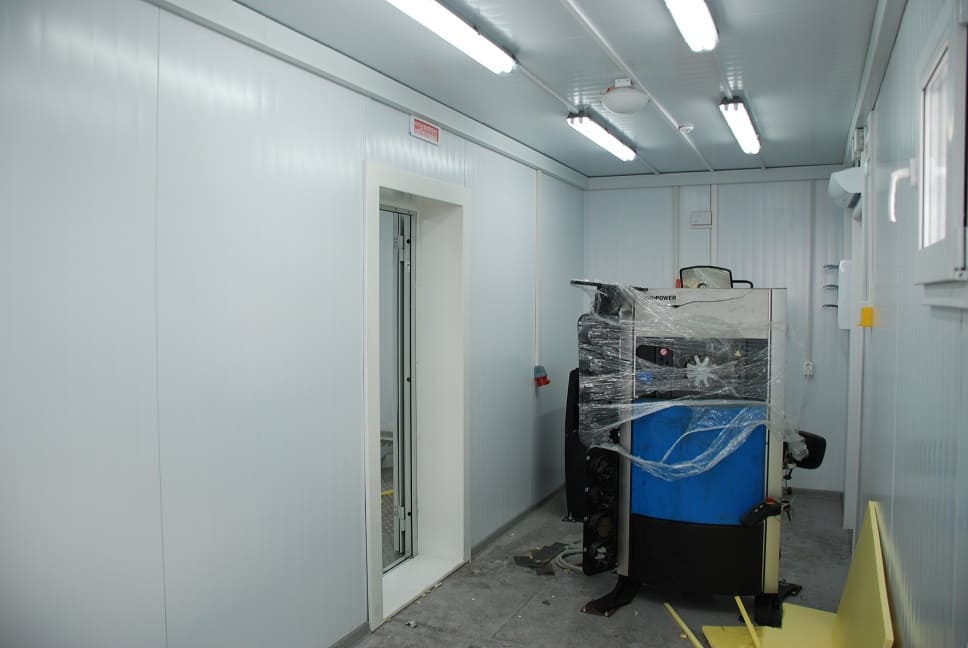 Сервисно-полевая станция — очередной проект, ставший уже серийным, произведен нашим предприятием в кратчайшие сроки (1 месяц) и смонтирован в Новосибирской области на угольном разрезе. В данной станции учтен опыт эксплуатации предыдущих изделий и внесены некоторые корректировки. Например, мы отказались полностью от тентовых конструкций, и заменили их на каркасные ограждающие конструкции цеха, кровлю перекрыли профлистом, оснастили СПС воротами. Как и в ранних версиях, СПС оборудована кран-балкой.