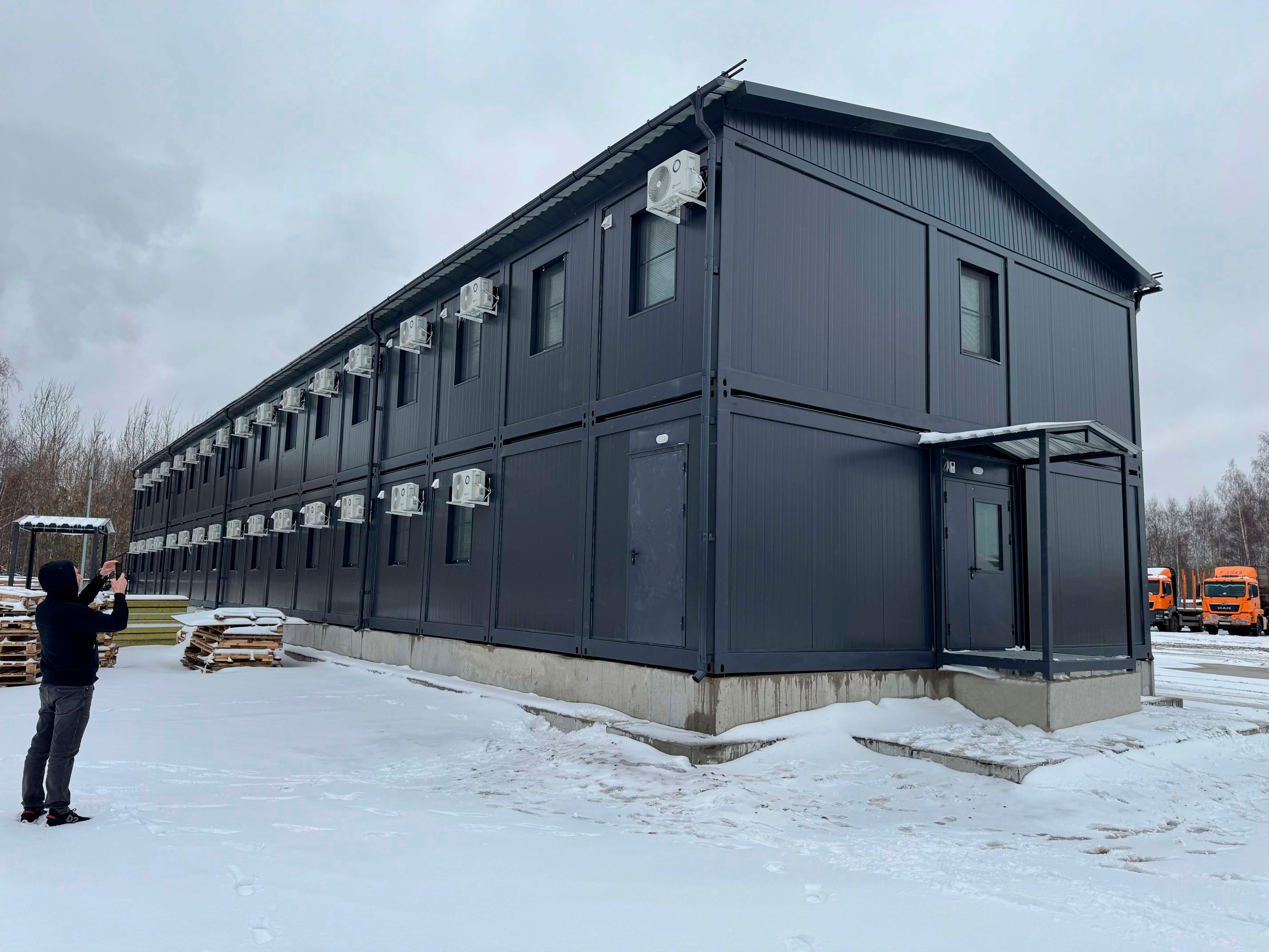 Общежитие, смонтированное в кратчайшие сроки, включает просторные жилые блоки, санузлы, зоны общего пользования и помещения для отдыха. Модули «Каскад» позволили организовать эргономичное пространство с продуманной инфраструктурой, что особенно важно для долгосрочного проживания. Технология КФМК гарантирует высокую теплоизоляцию, энергоэффективность и пожарную безопасность объекта.